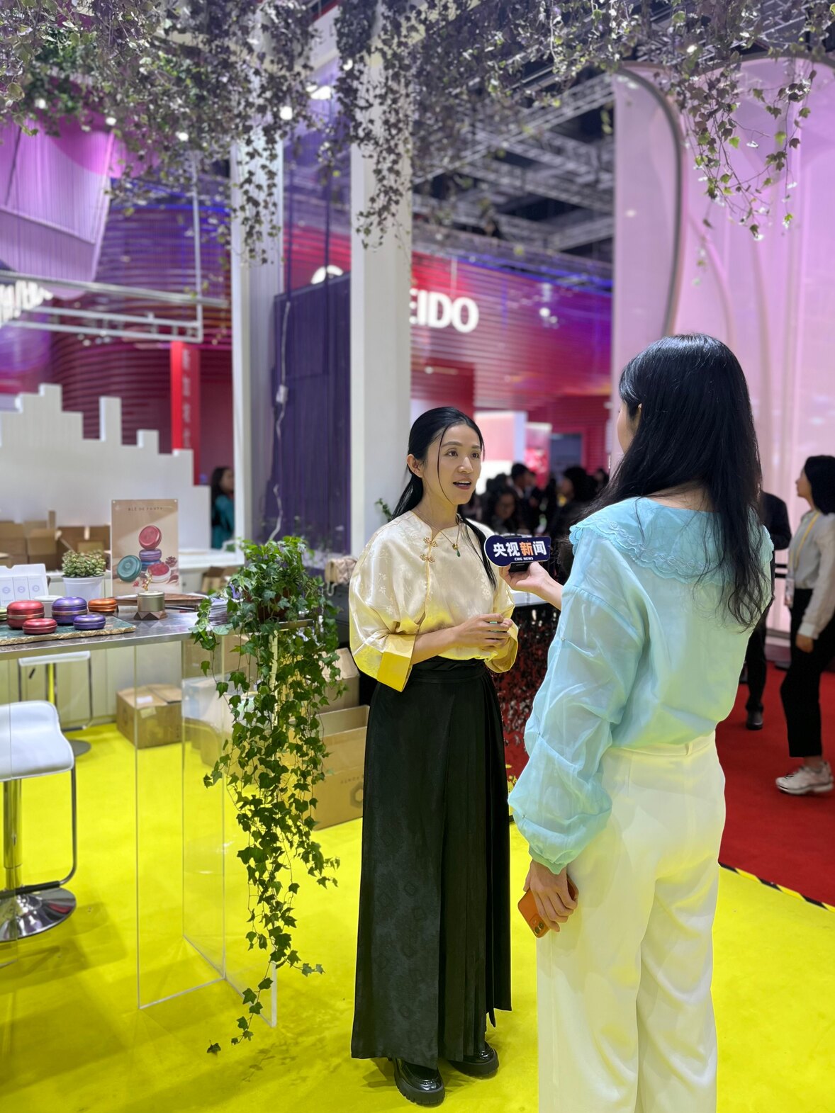 枫缇作为连续6年参加进博会的新加坡知名护肤品品牌,借助进博会的平台,在中国市场的品牌知名度迅速提升。这次枫缇的进博会展位已然可以和雅诗兰黛集团、资生堂、COTY科蒂集团等国际知名品牌毗邻,在偌大的进博会场馆内、上千个参展商之间,枫缇迎来了央视新闻的采访:“共建‘一带一路’倡议提出十年来,我们品牌是这一倡议的践行者、探索者和受益者。在去年疫情严峻的形势下,我们的产品从文莱运往中国仓库仅仅用了七天,充分体现了一带一路倡议下我们小众品牌迎来了新的发展机遇和充分支持。在未来,我们也将继续以实际行动践行‘一带一路’倡议。”紧接着,枫缇的工作人员开始向大家展示起品牌最畅销的马卡龙胶囊精华系列:“我们的每一盒马卡龙精华生产完毕都会注入氮气锁鲜,目的是更好得锁住精华里的植萃活性成分,保证每个消费者收到我们的产品都是新鲜且活性丰富的。不仅如此,马口铁盒可回收置换产品周边、胶囊皮由溶于水的胶原蛋白皮制成,可用来泡手泡脚...”在环保和可持续成为全球热潮的时代,枫缇力求在环保和功效性之间寻找到一种平衡,遵循“绿色、创新、科技”的发展宗旨,让环保不再是一句空洞的口号,它正成为一种时尚的生活方式。
